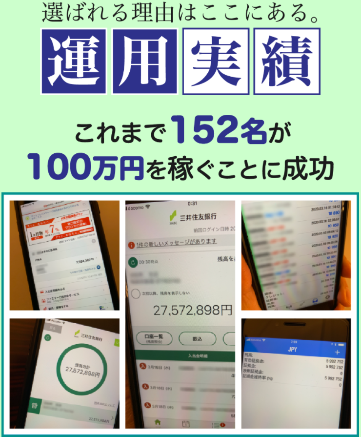 LP(宣伝ページ)では実績証拠(稼げた人の声)が掲載されているようです。